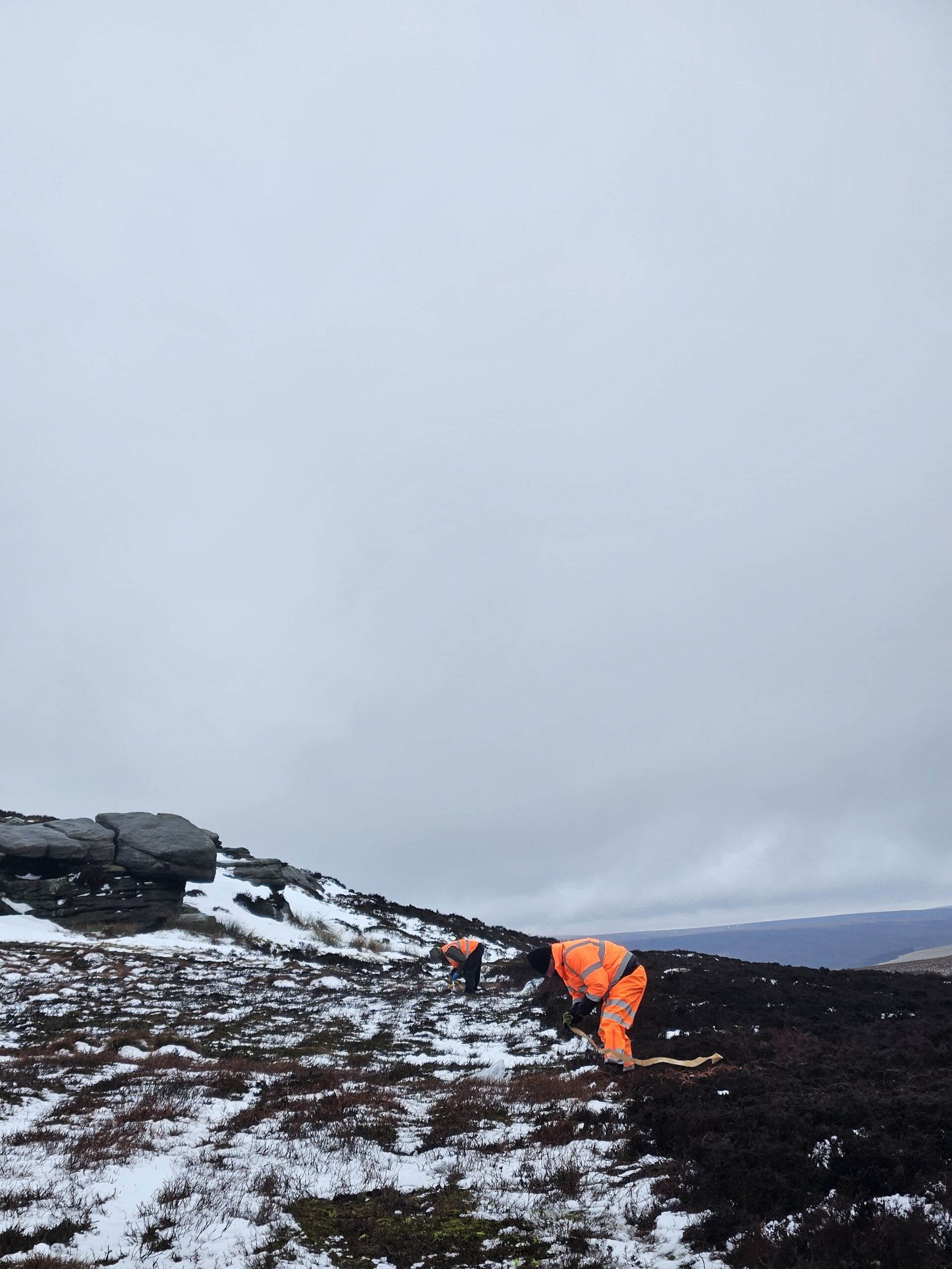 Due to the remote upland location of the planting areas and the requirement to transport materials on foot across the moor, the works required a workforce experienced in operating in challenging terrain and exposed environments. Our team has extensive experience delivering peatland restoration projects in similar conditions, including sites within the Dark Peak, and is well accustomed to long load-out distances and working across uneven and waterlogged ground.
