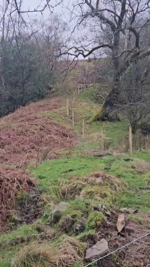The project forms part of a wider woodland creation scheme aimed at expanding native woodland cover, improving habitat connectivity, and enhancing biodiversity within this upland landscape. Works included extensive fencing installation and replacement alongside large-scale native tree planting to support long-term habitat establishment.